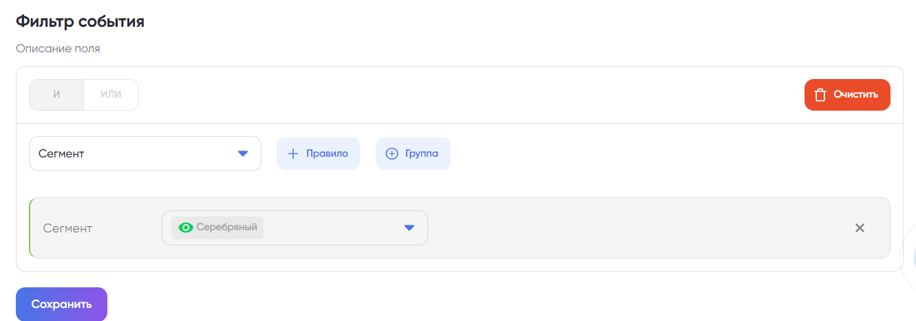 О том как создавать сегменты можно прочитать в нашей [справке](https://help.pluscards.ru/plus/administrirovanie/crm/segmenty).